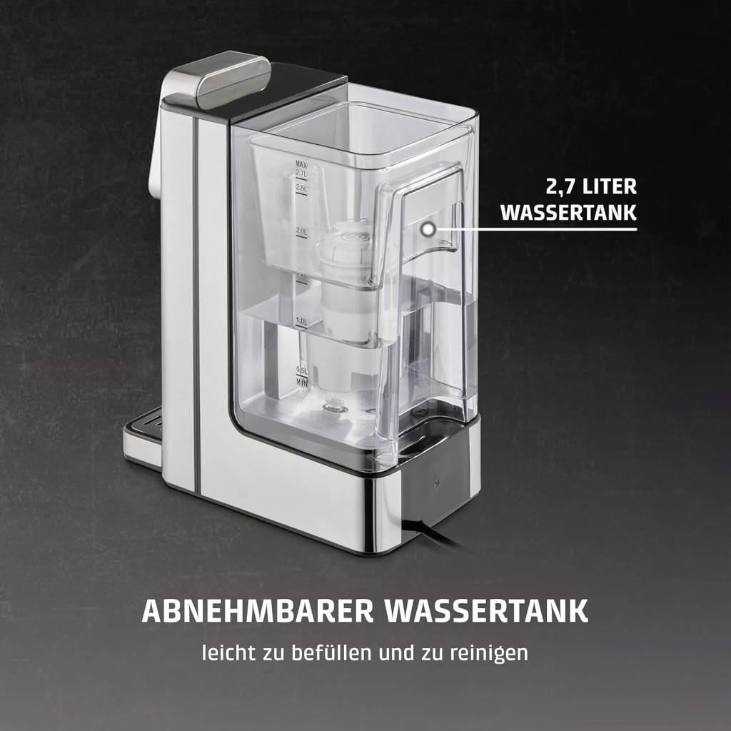 Az intuitív érintőképernyős vezérlőpanel lehetővé teszi a pontos hőmérséklet és adagolás beállítását. Tökéletes választás teaivók, kávékedvelők és azok számára, akik értékelik az időt és az energiahatékonyságot.
