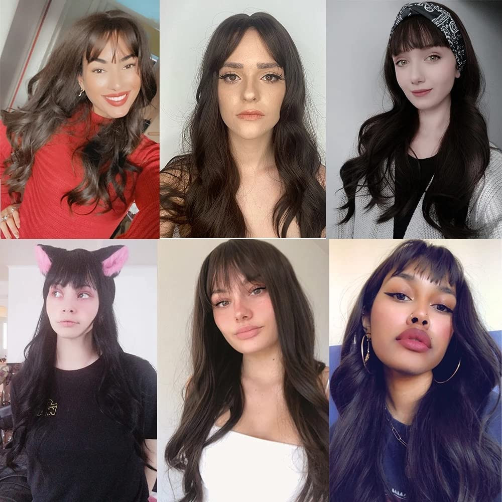 - ✨ Elegantný vzhľad: Bohatá tmavohnedá farba (#342822) s ofinou a dlhými, vlnitými kučerami