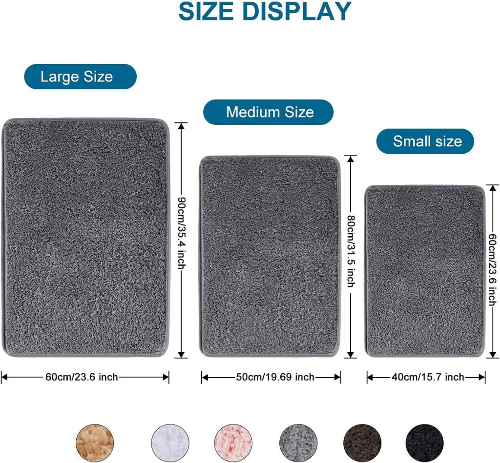 A szürke szín mellett választható fehér, barna, türkiz és fekete variáció is. Kérjük, mérje meg fürdőszobáját a vásárlás előtt, hogy biztosan megfelelő méretű szőnyeget válasszon.