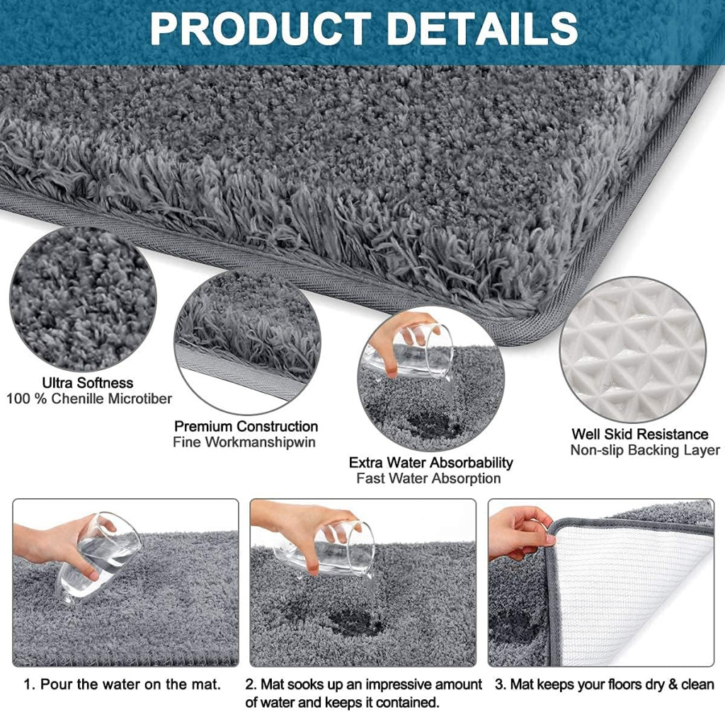 A Cumay fürdőszobai szőnyeg puha, csúszásmentes és rendkívül vízfelvevő: