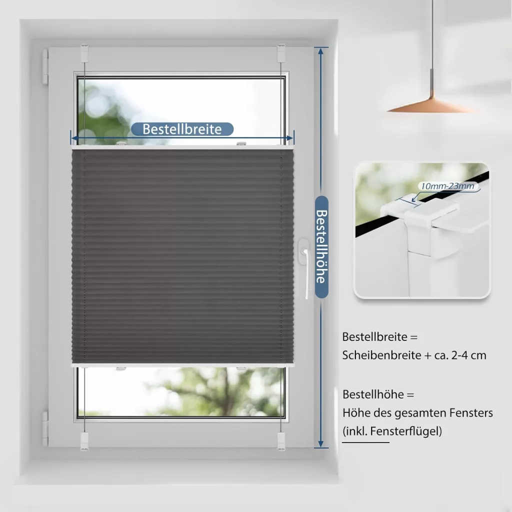 Upínacie konzoly plisovanej rolety sú vhodné pre rámy okien s hrúbkou od 1,0 do 2,3 cm. Pri objednávke treba uviesť šírku okenného krídla. Pre dosiahnutie optimálneho efektu sa odporúča prirátať k šírke 2-3 cm na každej strane.