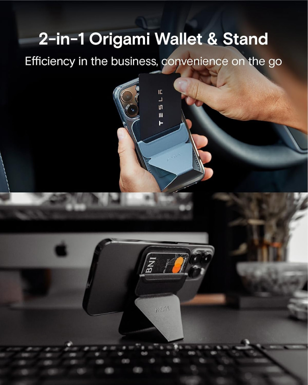 • Sokoldalú: Wallet, állvány és kártyatartó egy termékben