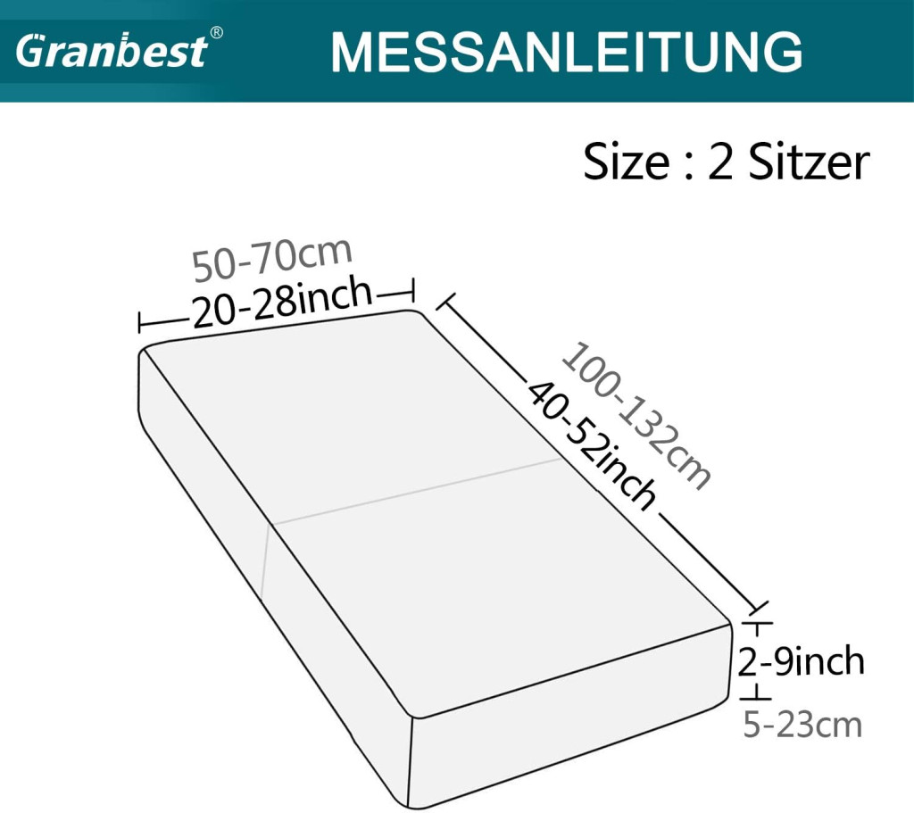 Poťah Granbest je mimoriadne všestranný a hodí sa k mnohým typom pohoviek. Verzia pre 2-miestnu pohovku sa odporúča pre nasledujúce rozmery: