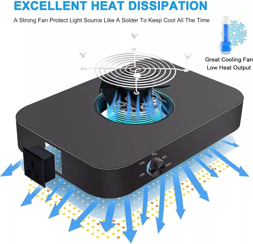Lampa je navrhnutá na osvetlenie plochy 120 x 120 cm, čo je ideálna veľkosť pre domáce a menšie komerčné pestovateľské priestory. Inštalácia je mimoriadne jednoduchá: