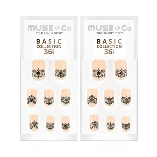 Čipkované trblietavé umelé nechty Muse & Co vynikajú medzi konkurenciou svojou trvanlivosťou a jedinečným vzhľadom. Zatiaľ čo iné nalepovacie umelé nechty často odpadávajú alebo sa poškodia, táto súprava zaisťuje dlhotrvajúce nosenie. Čipkovaný vzor a trblietavý povrch navyše dodávajú luxusný vzhľad, ktorý iné produkty v podobnej cenovej kategórii zriedka ponúkajú.