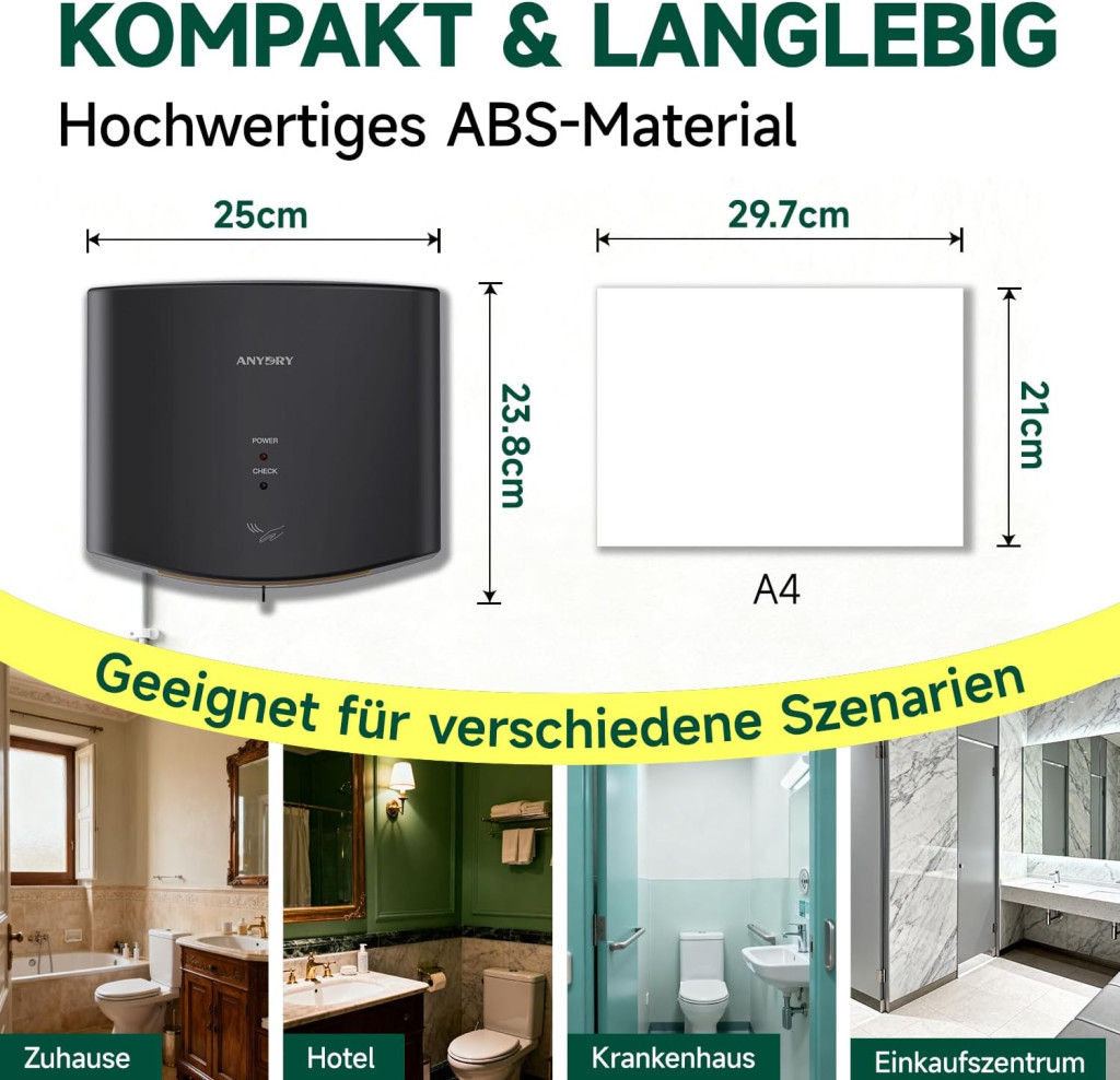 anydry 2630S Kompaktný sušič na ruky - Automatický elektrický sušič na ruky