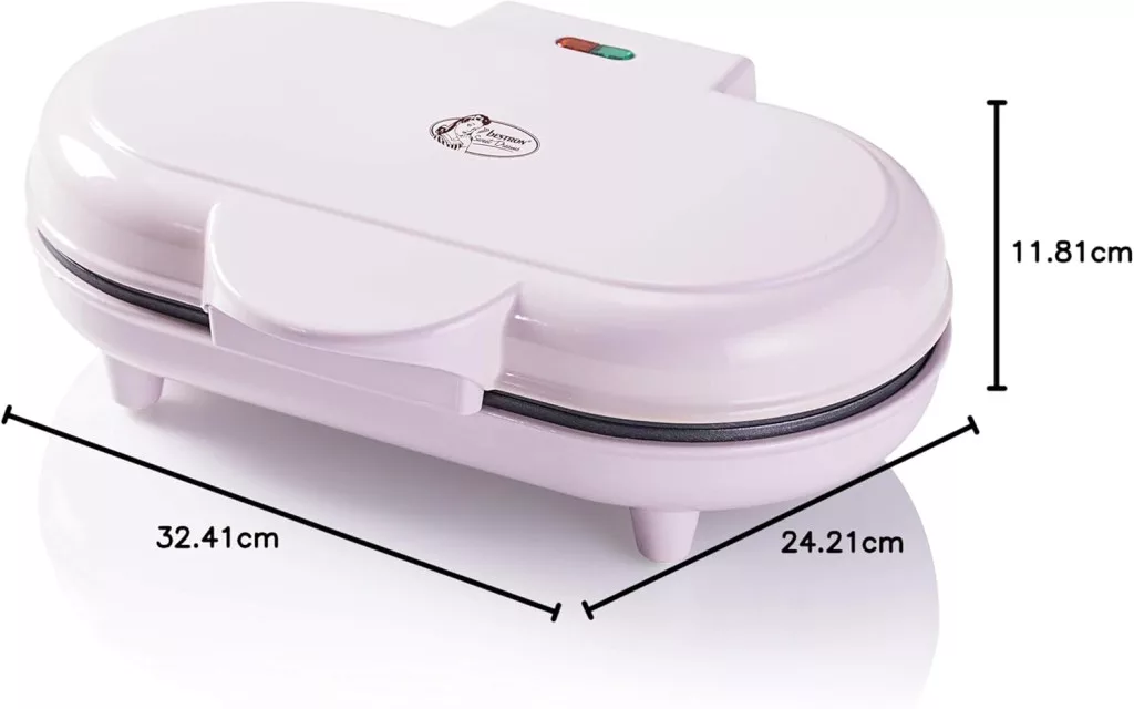 Bestron Dupla Gofrisütő Szív Alakú Wafflekhez, Tapadásmentes Bevonattal, 1000W, Rózsaszín