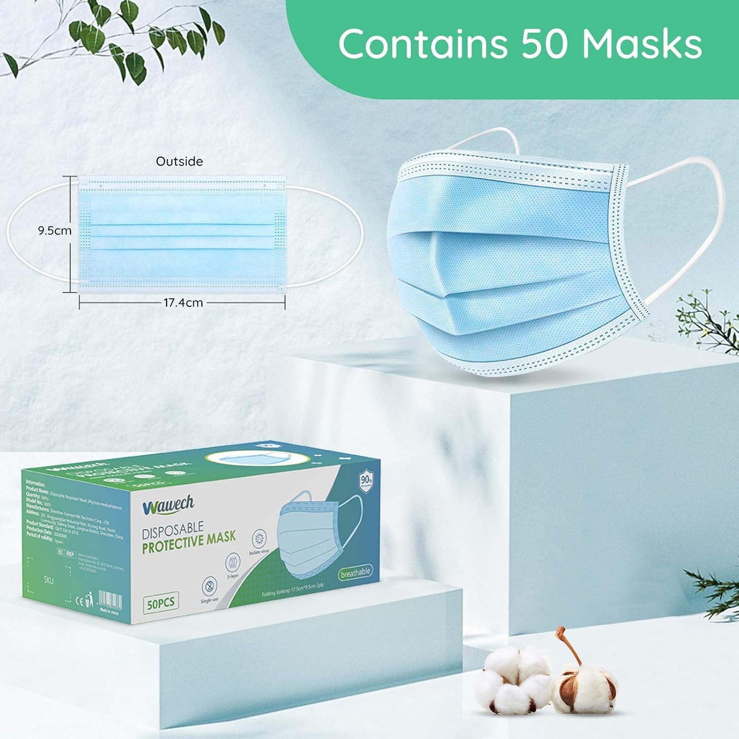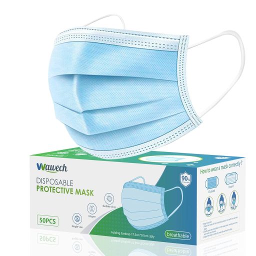 A Wawech 50 darabos eldobható szájmaszk csomag 3 rétegű védelemmel:
