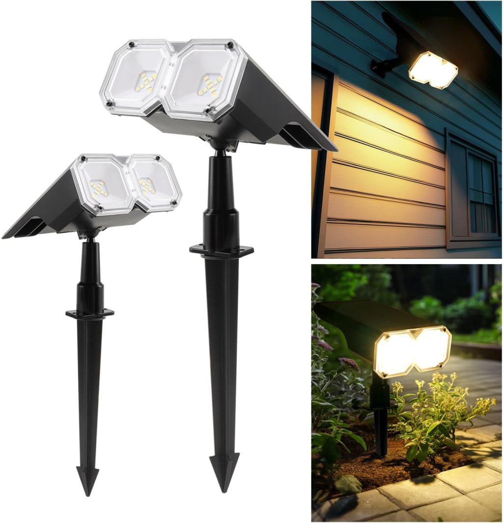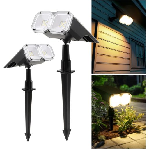 da LIGHT Napelemes Kerti Lámpa LED, Dimmelhető Spotlámpa Meleg és Hideg Fehér, IP65 Vízálló, 2 db Talajszeg és Fali Tartóval