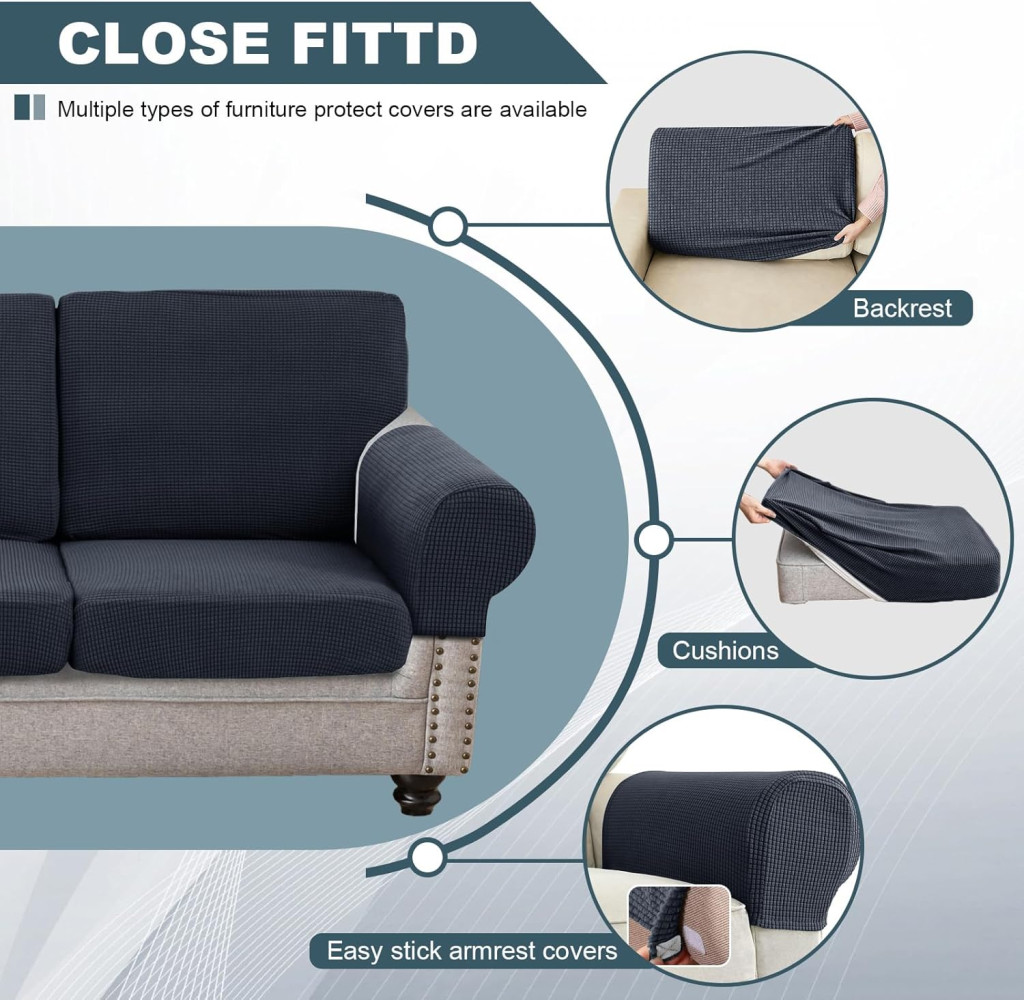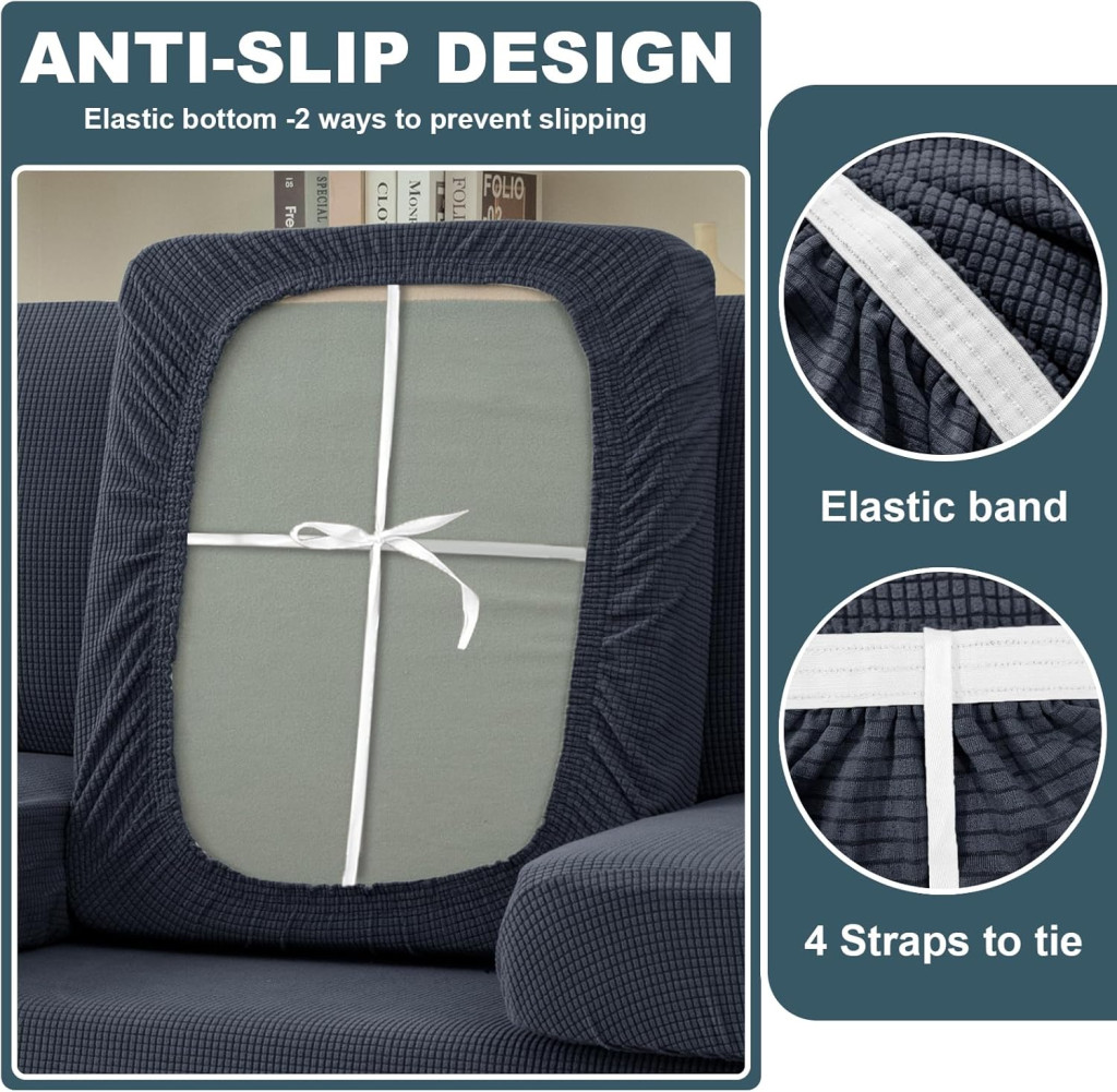SYLC Rugalmas Kanapé Ülőpárna Huzat 3 Személyes Sötétszürke Kockás