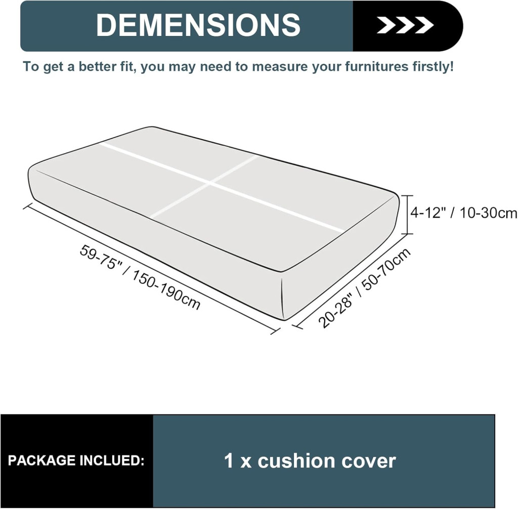 3-miestna veľkosť (70 x 190 x 30 cm) je ideálna pre väčšie pohovky. Pred objednaním je dôležité zmerať si rozmery vašich sedacích vankúšov. Poťah je vyrobený z pružného materiálu, preto: