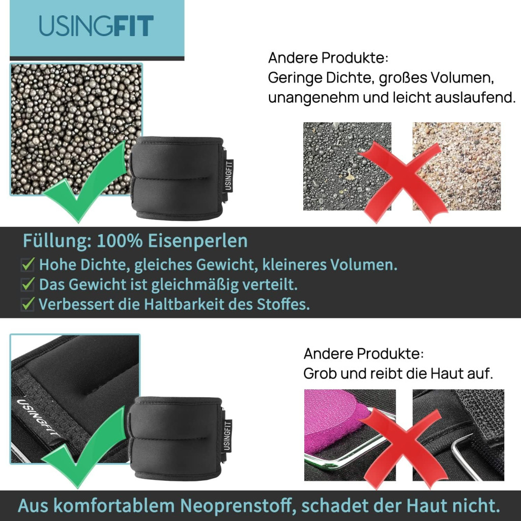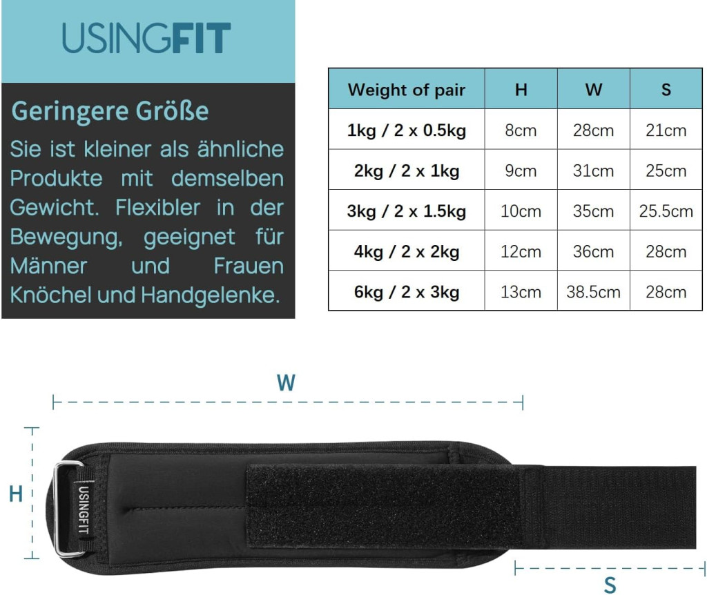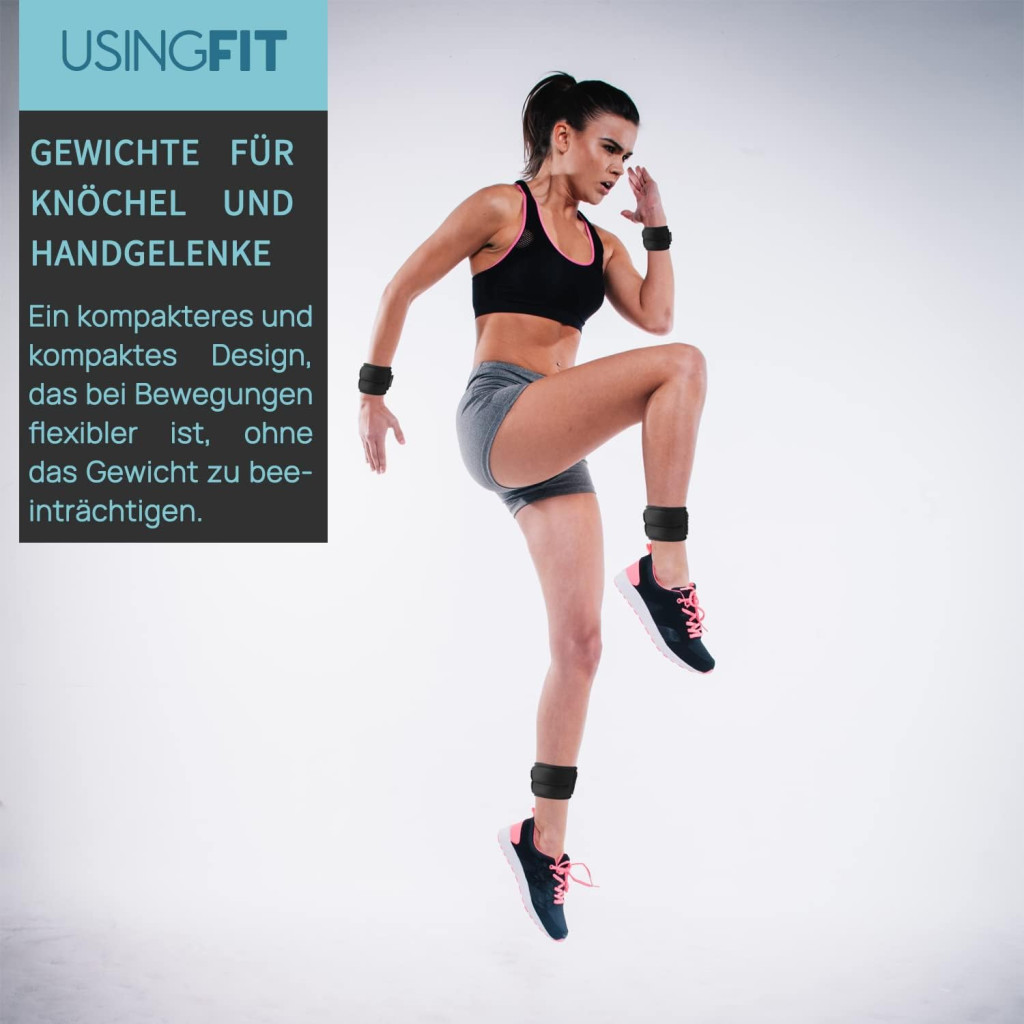 A USINGFIT súlyok univerzális méretezésűek és szinte minden emberre illeszkednek. Az erős, rugalmas pántok lehetővé teszik a tökéletes illeszkedés beállítását, függetlenül a csukló vagy boka méretétől.