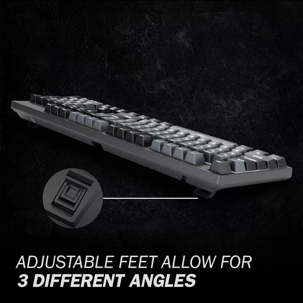 • Cherry MX Silent Red kapcsolók: Lineáris visszajelzéssel rendelkező, extra csendes kapcsolók 45 cN aktiválási erővel és 3,7 mm teljes úttal. Tökéletes a gyors és könnyű billentyűlenyomásokhoz.