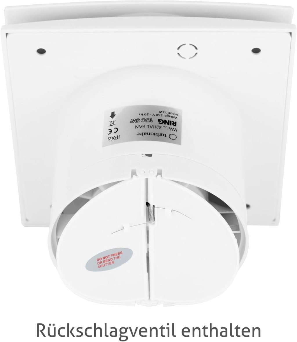 Turbionaire RING 100 SW fürdőszobai ventilátor 100mm fehér visszacsapó szeleppel