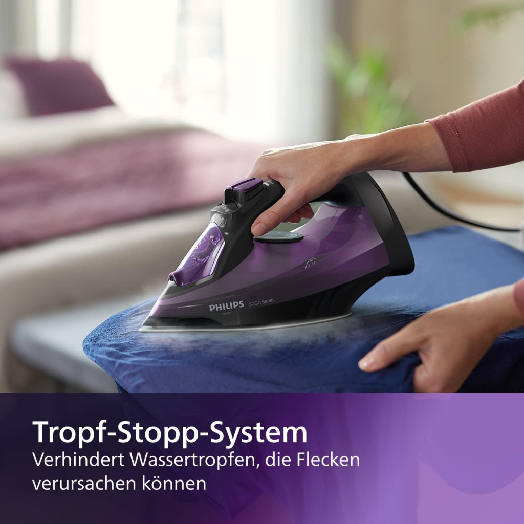 A Philips 5000 Series gőzvasaló kiváló választás azoknak, akik megbízható, professzionális teljesítményt keresnek ésszerű áron. Az innovatív SteamGlide Plus talp garantálja a hosszú élettartamot, míg a 45 g/perc folyamatos gőzkibocsátás és 180 g gőzlökés biztosítja a gyors és hatékony ránceltávolítást. Az integrált vízkőoldó rendszer és csepegésmentes funkció további előnyöket nyújtanak, amelyek ezt a vasalót ideálissá teszik a napi használatra.
