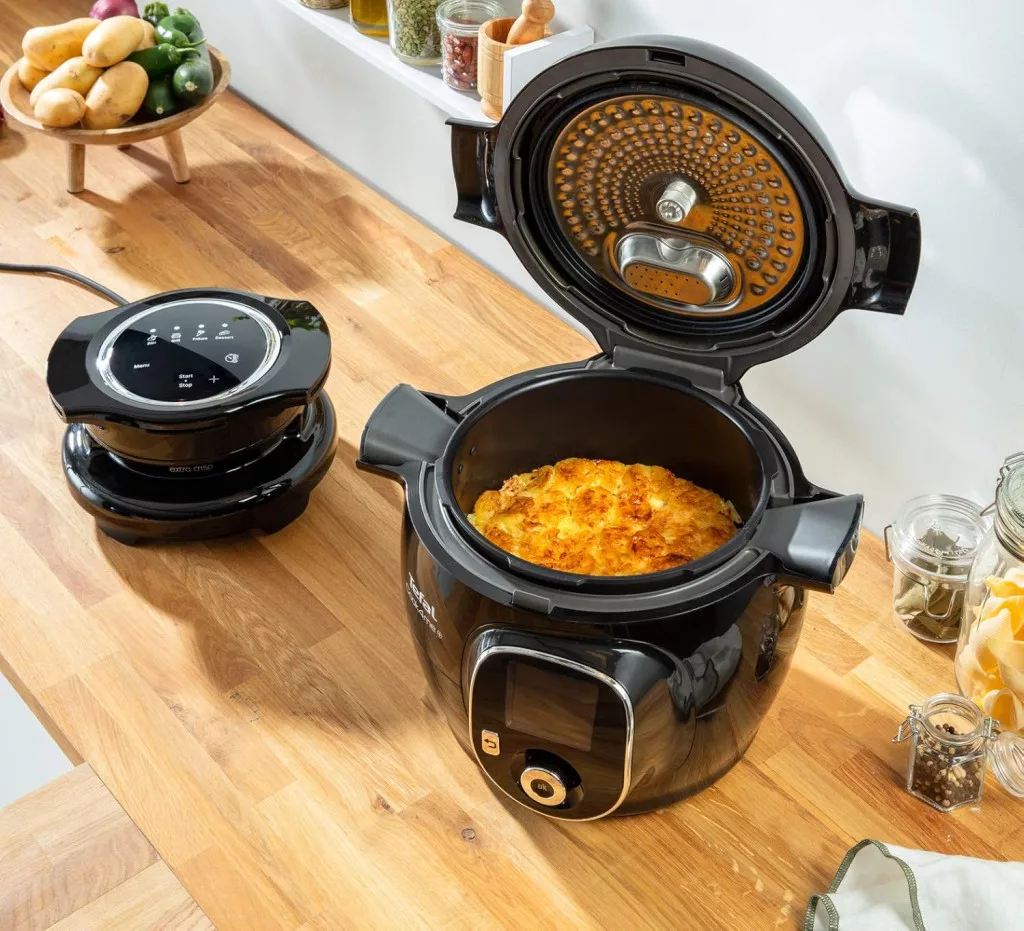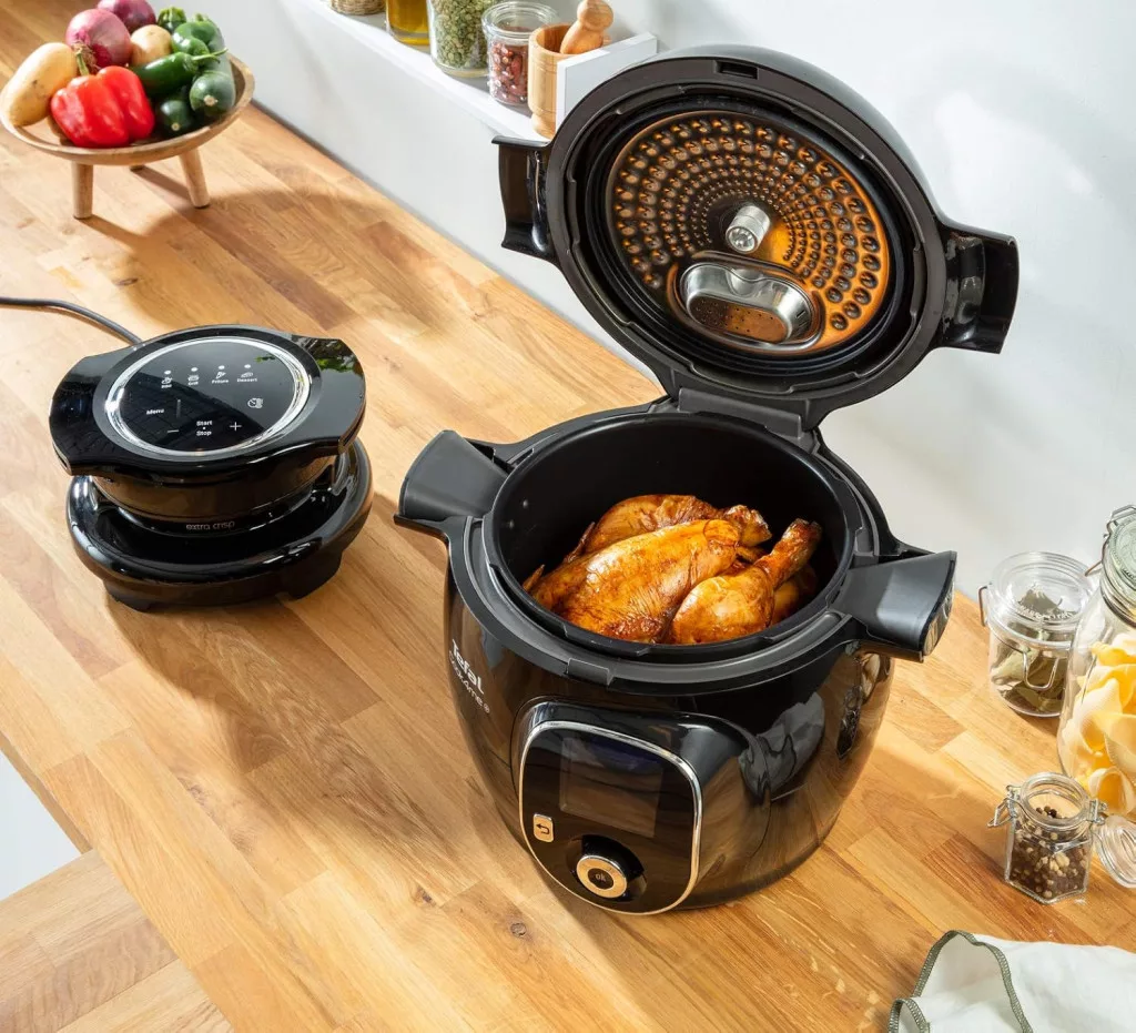 Az Extra Crisp fedél és a Cookeo nyomásfőzési funkciója tökéletesen egymást kiegészítik. Könnyedén válthat a két mód között, így egy készülékkel több főzési technika érhető el. Ez a rugalmasság lehetővé teszi, hogy először nyomáson főzze az ételeket, majd az Extra Crisp fedéllel adja meg a végső ropogós felületet.