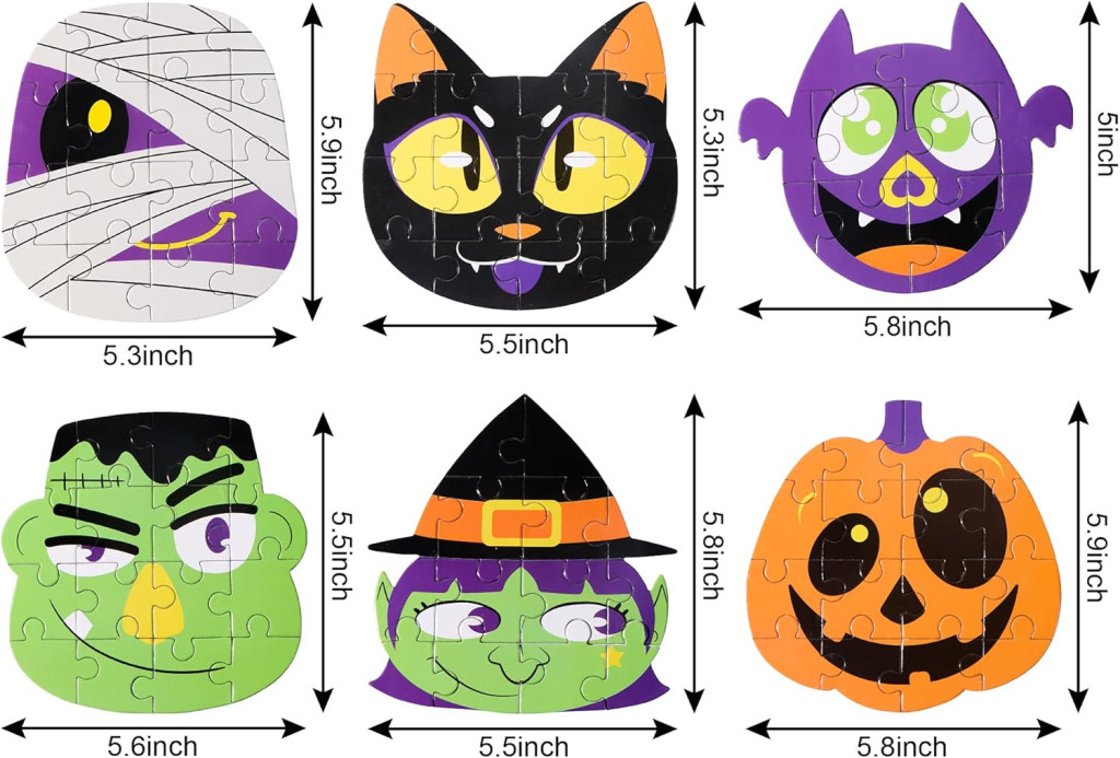 JOYIN 36-dielne halloweenske puzzle v slepom balení so 6 postavičkami pre deti