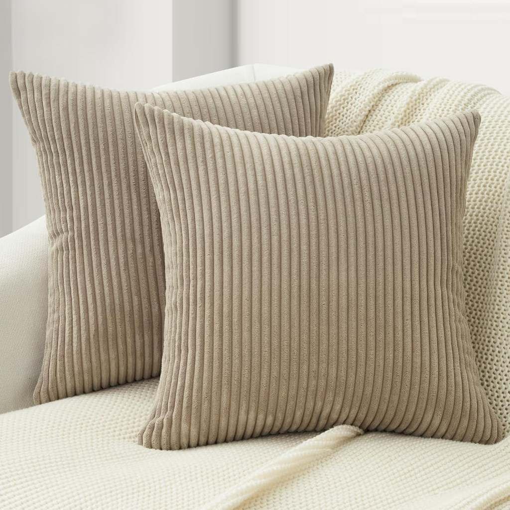 Topfinel 2 ks menčestrových obliečok na vankúš, taupe, 40x40 cm, mäkké, dekoratívne