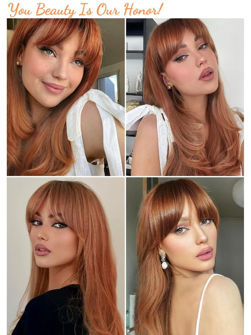 Honygebia Réz Színű Paróka Frufruval - Hosszú Narancssárga Női Paróka
