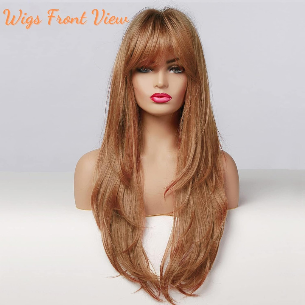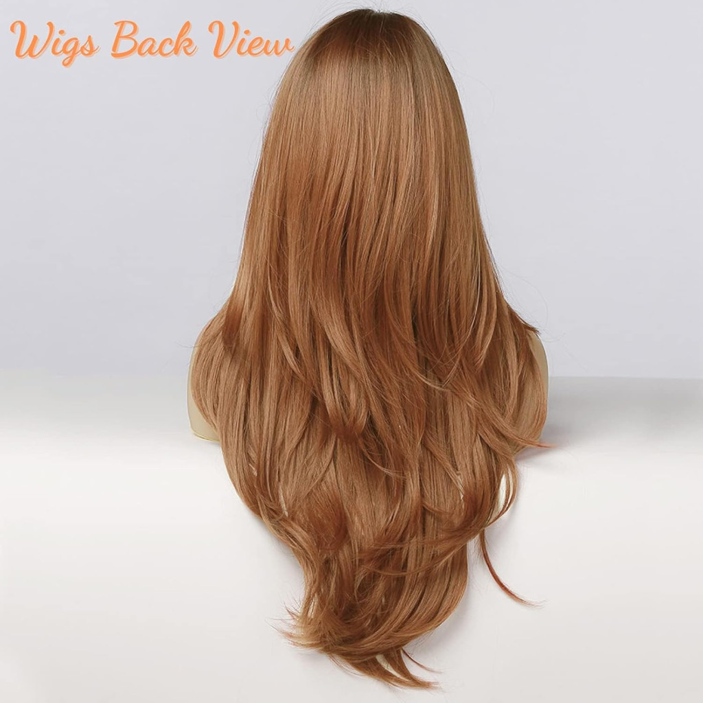 Honygebia Réz Narancs Paróka Frufruval - Hosszú Női Szintetikus Hőálló Paróka Arany Barna Színben Karneválhoz Jelmezhez