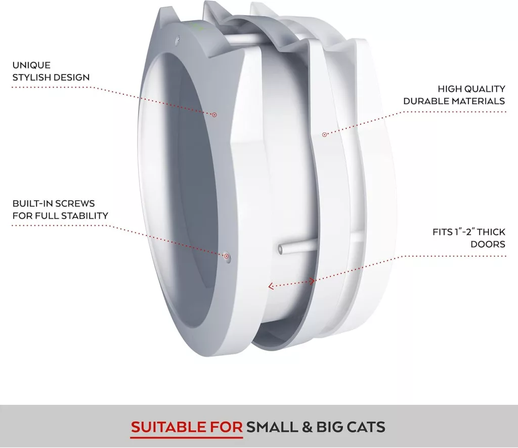 Mačacie dvierka LYNX nie sú len praktickým riešením – sú štýlovým doplnkom vášho domova. Jedinečný kruhový dizajn ich odlišuje od bežných štvorcových dvierok a dodáva im moderný, elegantný vzhľad. Hliníkový rám zaručuje dlhú životnosť a spoľahlivosť, zatiaľ čo flexibilná klapka zabezpečuje, že vaša mačka môže ľahko prechádzať, no pachy a hluk zostanú mimo obývačky.