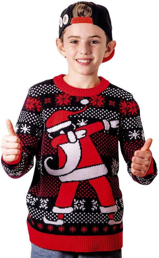 Vianočný detský sveter Shirtgeil je skutočne unikátny kúsok, ktorý vďaka motívu tancujúceho Santa Clausa (Dab Santa) okamžite upúta pozornosť. Tento pletený sveter nie je len kus oblečenia, ale celý vianočný zážitok, ktorý je ideálny na vianočné večierky, príjemné domáce večery alebo prechádzky na vianočných trhoch. Sveter je skvelým darčekom pre chlapcov aj dievčatá, či už na Vianoce alebo na Mikuláša.