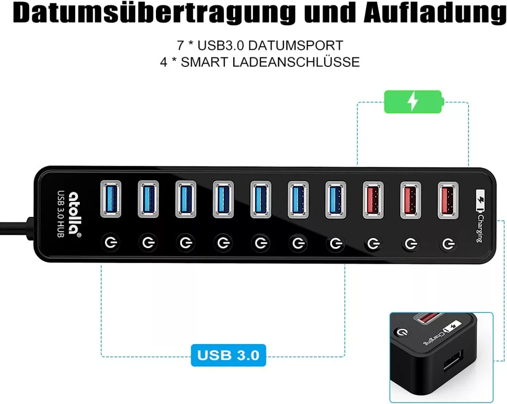 • 11 Portos Kapacitás: 7 USB 3.0 adatport + 4 intelligens töltőport egy kompakt eszközben