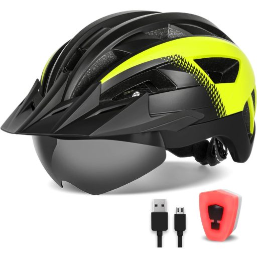 Kerékpáros Sisak Mágneses Napszemüveggel és USB LED Lámpával
