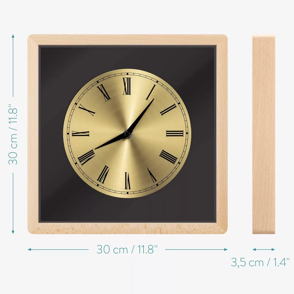 Navaris Fa Falióra Négyzet Alakú 30x30 cm Arany Számlappal Világosbarna