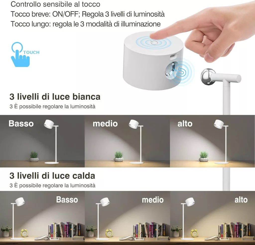 - 3 úrovne jasu: Pomocou dotykového tlačidla môžete jednoducho prepínať medzi nízkou, strednou a vysokou intenzitou svetla