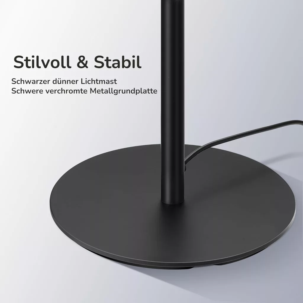 EDISHINE Állólámpa - Fekete Alumínium LED Padlólámpa 3000K Meleg Fénnyel, Szabályozható Fényerővel, Lábkapcsolóval, 1100 Lumen, 147 cm Magas