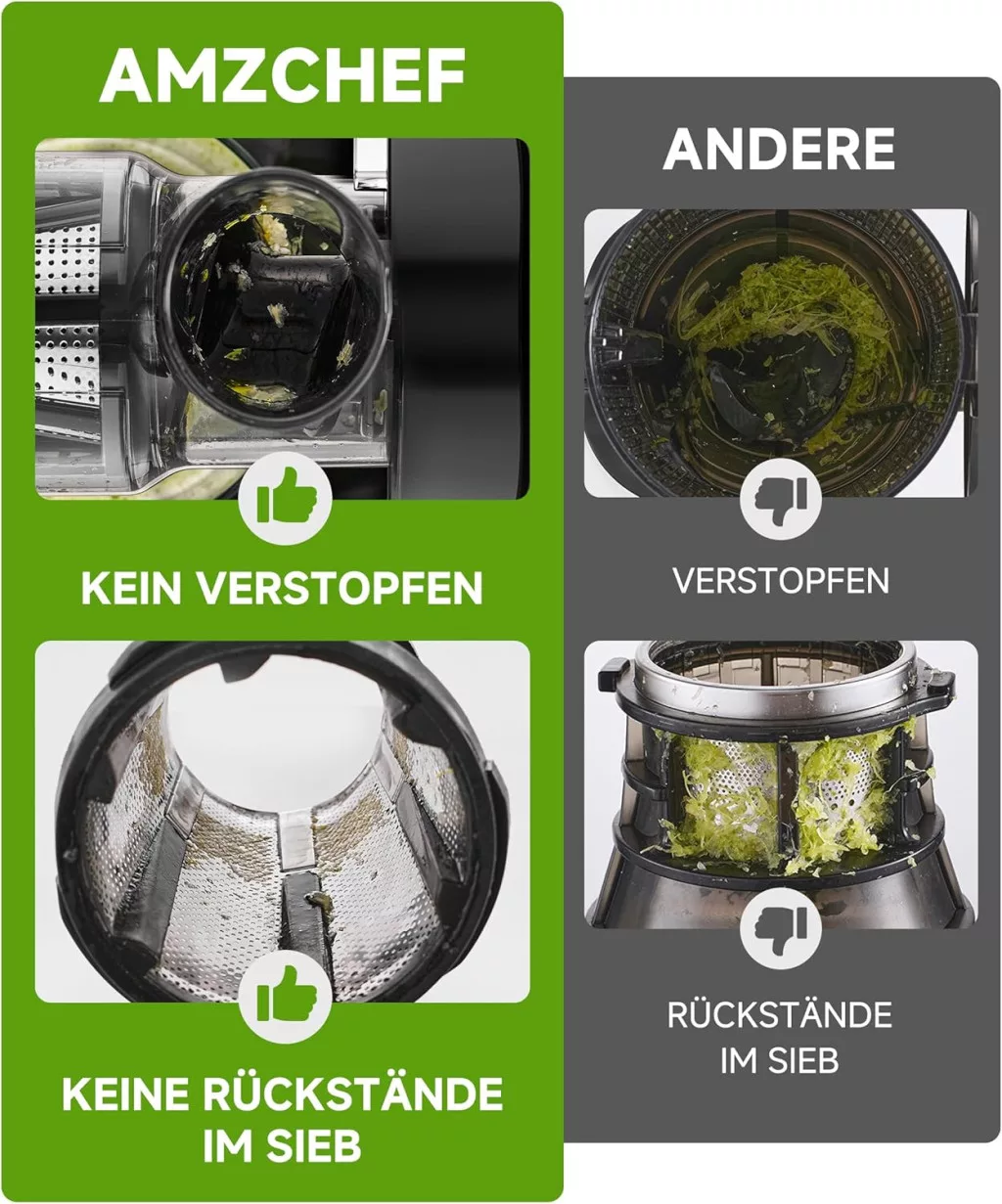 Az AMZCHEF Slow Juicer professzionális gyümölcs- és zöldségprés, amely forradalmasítja a friss ivólevek készítését:
