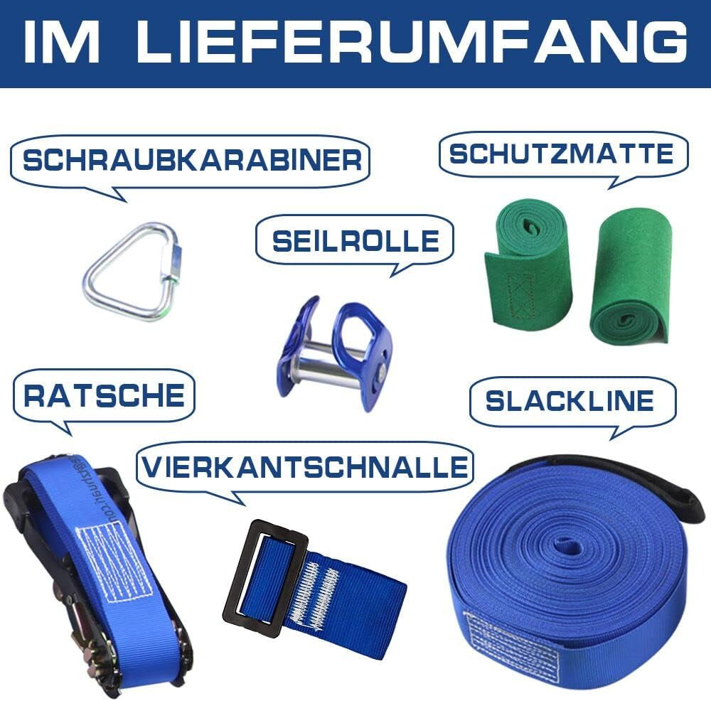 BUBBLEBAY Slackline Szett 15 m Kötéllel és Fa Védelemmel - Egyensúlyozó Kötélpálya Akadálypályához - Kültéri Egyensúlyfejlesztő Edzőeszköz