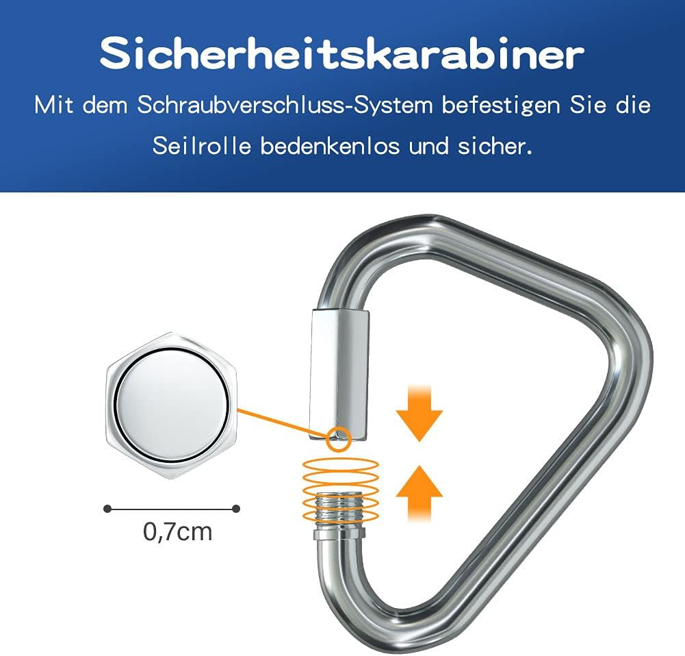 • Csavaros karabiner és négyzet alakú csat a biztonságos rögzítésért