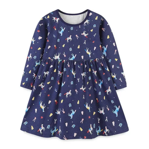 Veselé dievčenské tričkové šaty s dlhým rukávom s kreslenými postavičkami Veselé dievčenské tričkové šaty s dlhým rukávom s kreslenými postavičkami - Roztomilé, farebné detské oblečenie
