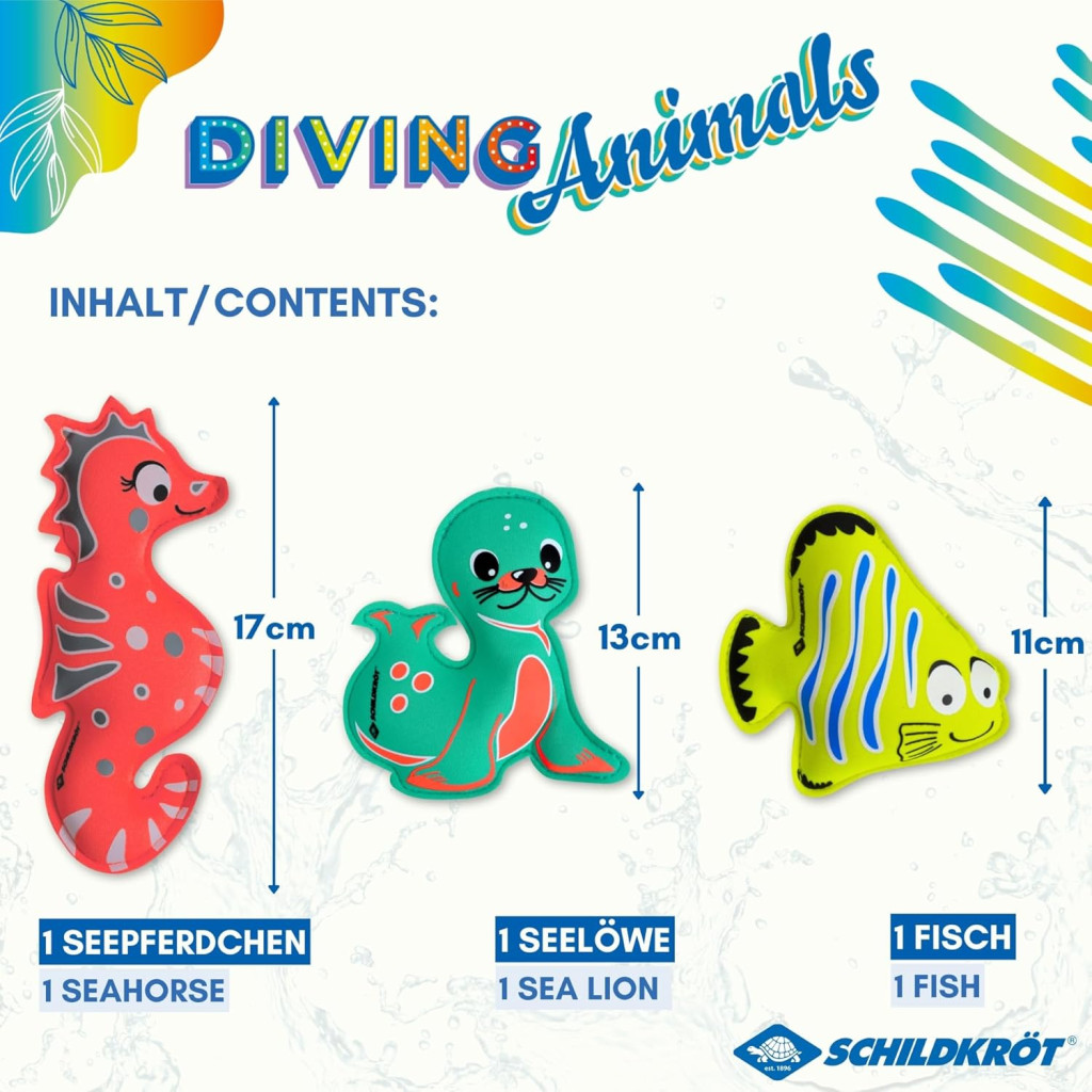 A Schildkröt Neoprene Diving Animals egy kiváló minőségű búvárkodó készlet, amely három szórakoztató tengeri lényt tartalmaz: egy tengeri oroszlánt, egy tengeri lovat és egy halat. Ez a 3 darabos szett tökéletes választás azoknak a gyermekeknek, akik szeretnek a vízben játszani és fejleszteni szeretnék úszási és búvárkodási képességeiket.
