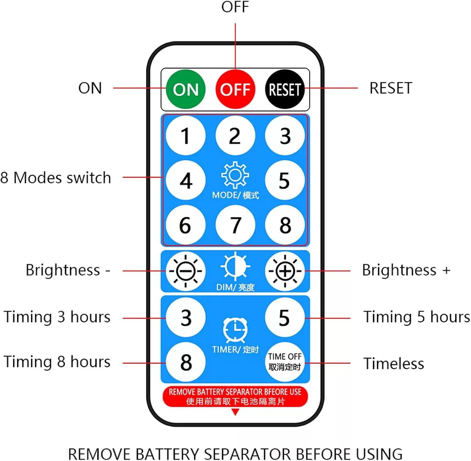 - Ovládateľný diaľkovým ovládačom: 8 režimov, 4 úrovne jasu