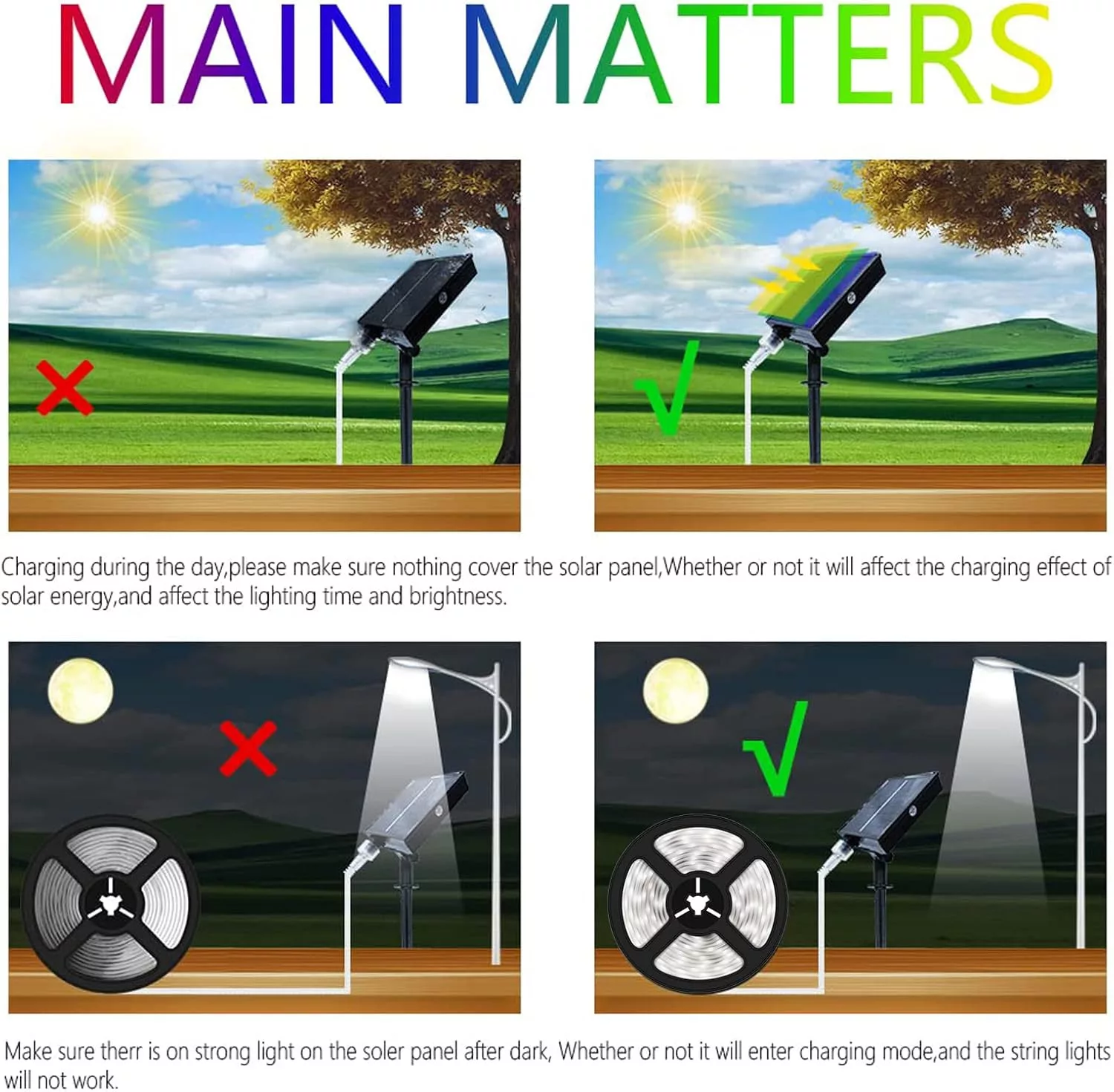 - Solárny panel umiestnite na miesto, kde naň počas dňa dopadá priame slnečné svetlo