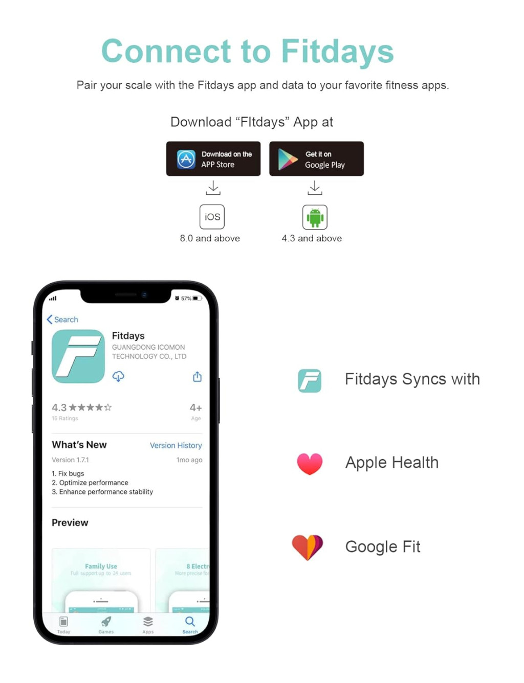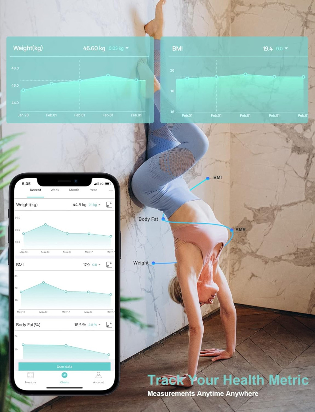 Healthkeep digitális testösszetétel-elemző mérleg, okos skála iOS/Android alkalmazással, 180 kg-ig