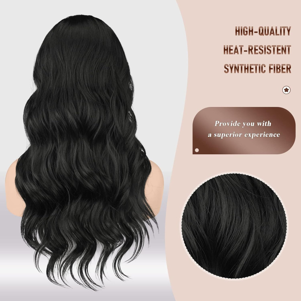 FESHFEN Dlhá vlnitá parochňa čierna - Čipkovaný predný diel | 65 cm ???? Prehľad produktu