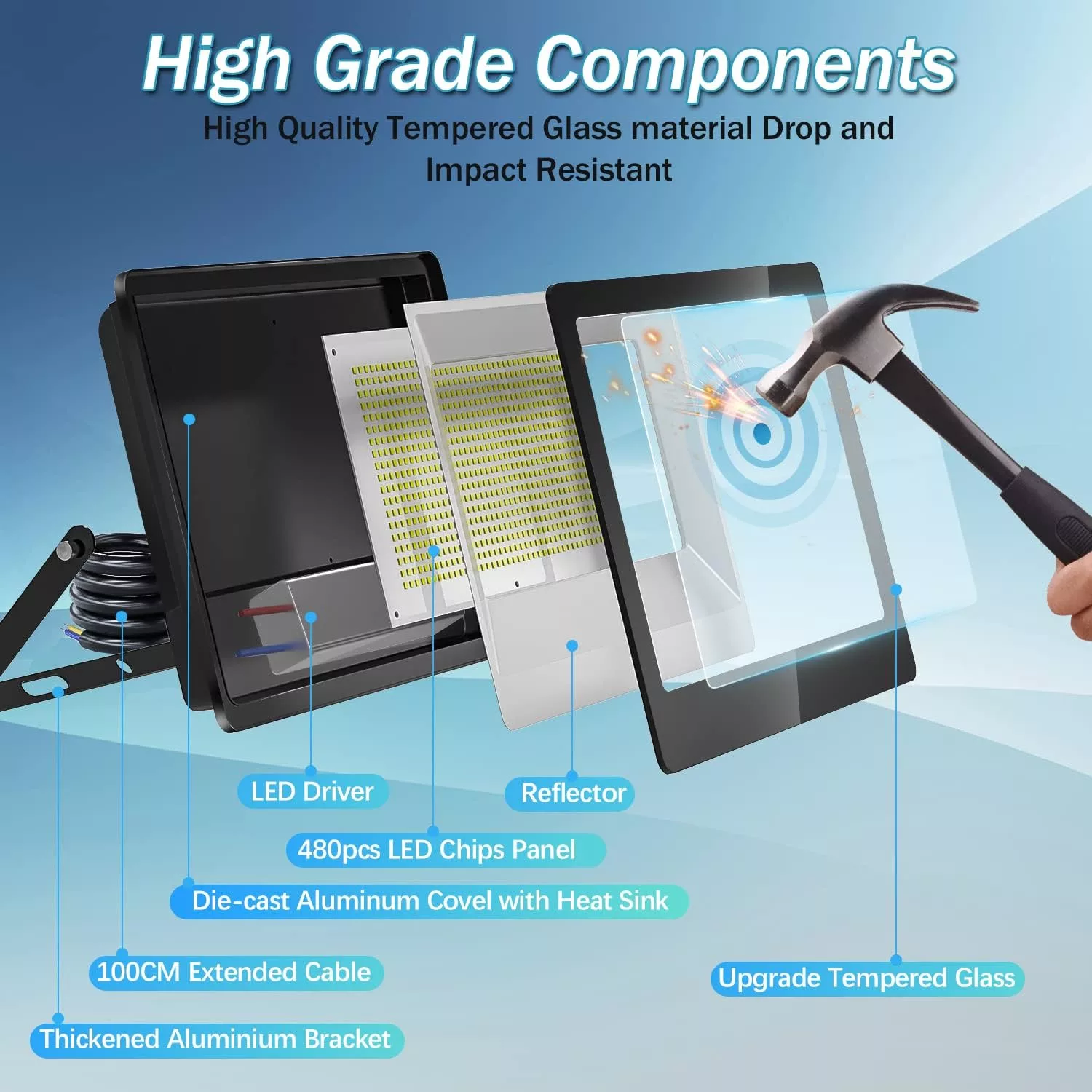 Gyors hőlevezetés és stabil teljesítmény: A szélesebb és vastagabb alumínium ötvözet hűtőborda nagyobb hűtési felületet biztosít. A beépített LED transzformátor felgyorsítja a hőlevezetést. A YIQIBRO LED reflektorok sokkal stabilabb teljesítményt nyújtanak és hosszabb ideig működnek a hasonló termékekhez képest.