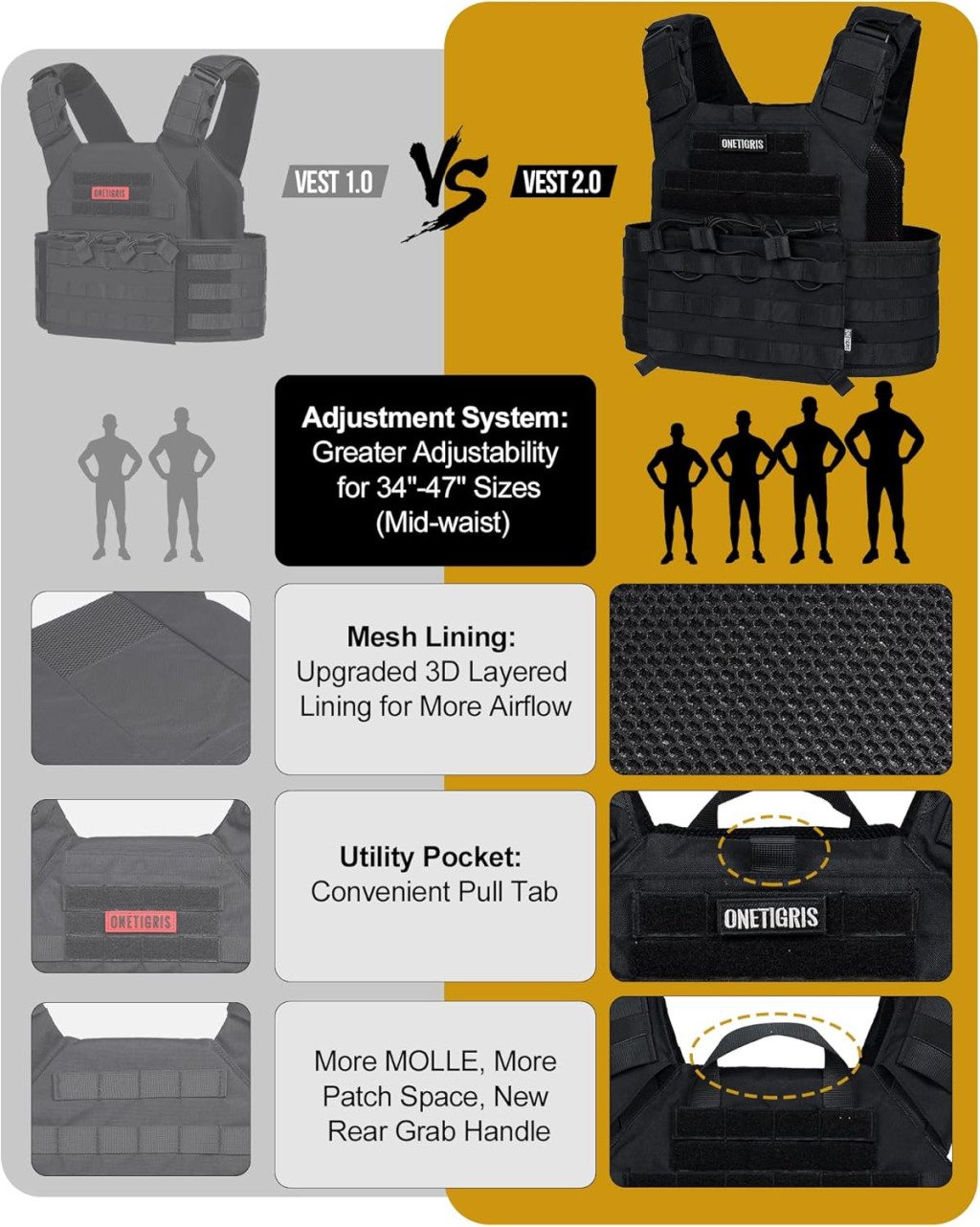 Počas návrhu vesty DOOM 2.0 venovali inžinieri OneTigris osobitnú pozornosť pohodliu pri nosení a funkčnosti. Nastaviteľné ramenné a bedrové popruhy majú protišmykové vložky, vďaka čomu vesta perfektne sedí nositeľovi bez ohľadu na typ postavy. MOLLE systém na prednej a zadnej strane vesty umožňuje pripevnenie rôznych doplnkov, tašiek a vybavenia, takže všetky potrebné nástroje sú vždy po ruke.