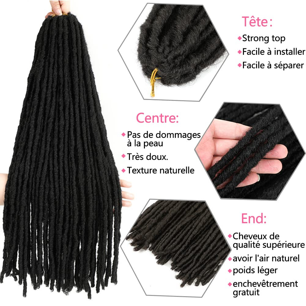SOKU háčkované dreadlocky na predlžovanie vlasov majú ručne pletený dizajn s čistými slučkami, ktorý zaisťuje prirodzený vzhľad. Vďaka predpripraveným slučkám sa extrémne rýchlo a jednoducho aplikujú, čo je obzvlášť výhodné pre začiatočníkov. Vlasové vlákna sú pevne spletené, takže sa ľahko nerozpadávajú a dlho si udržia svoj tvar.