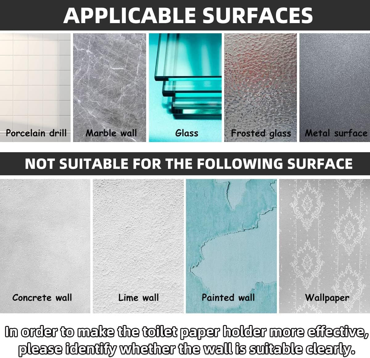 A tartó sima, nem porózus felületekre szerelhető fel, mint például kerámia csempék, márvány, üveg és fém felületek. Nem alkalmas durva felületekre, mint például mészfestett falak, vakolat vagy textúrázott tapéta.