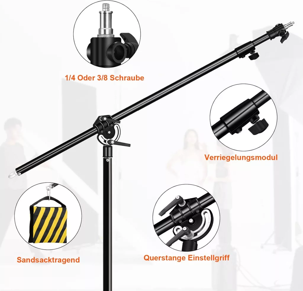 soonpho Boom Arm Pro je profesionálny nadstavec na svetelný statív, ktorý poskytuje stabilné a spoľahlivé riešenie pre štúdiovú fotografiu: