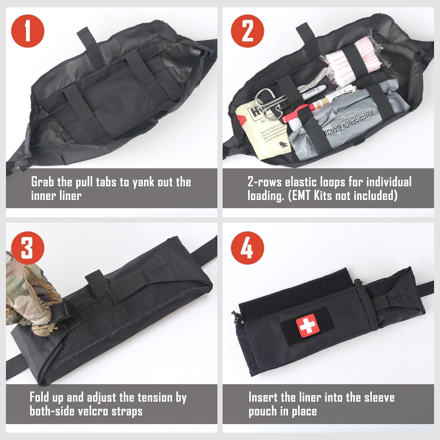 Rugalmas Belső Szervezés Rugalmas szalagok és állítható Velcro rögzítések biztosítják, hogy az összes eszköz biztonságosan maradjon a helyén, függetlenül a terheléstől vagy a mozgástól.