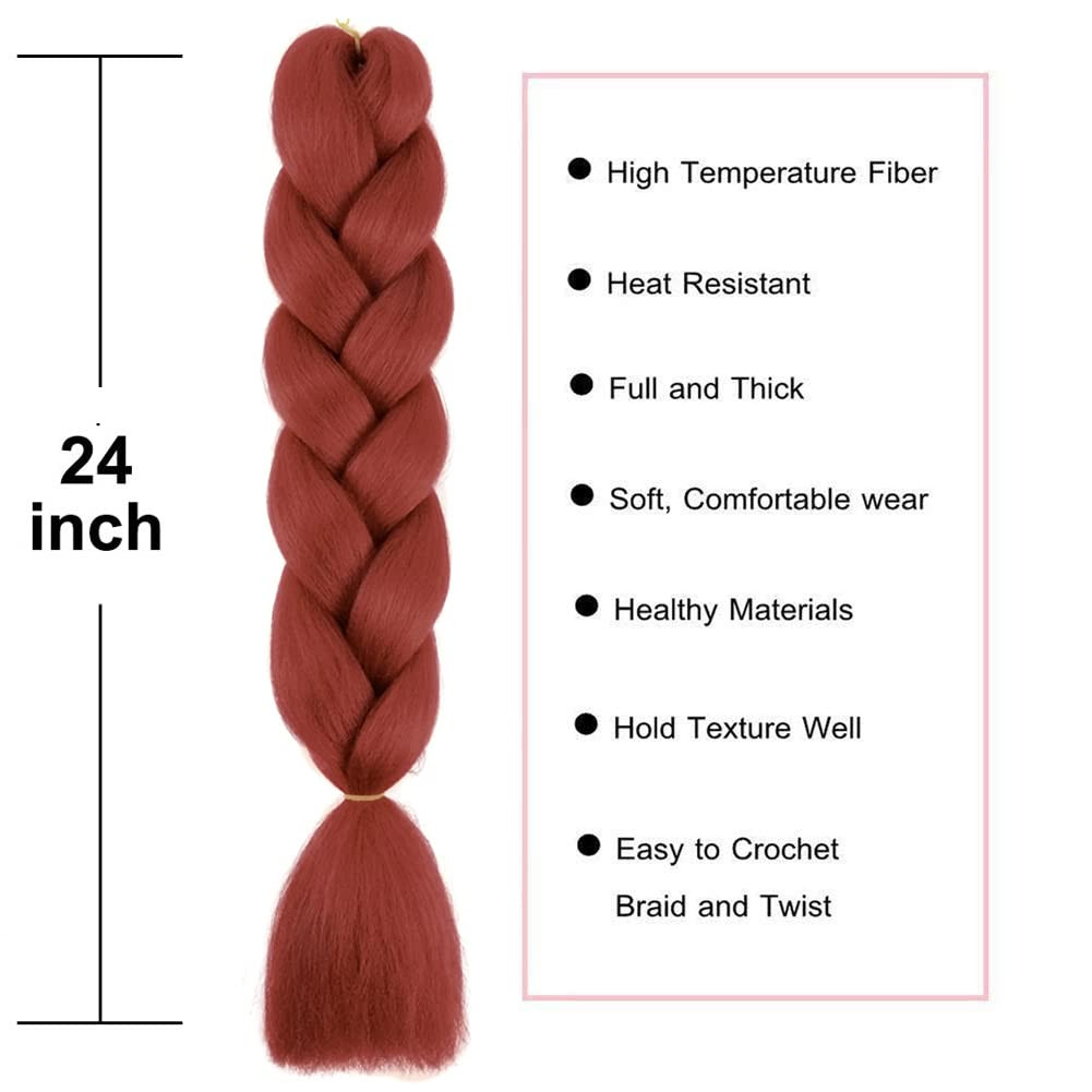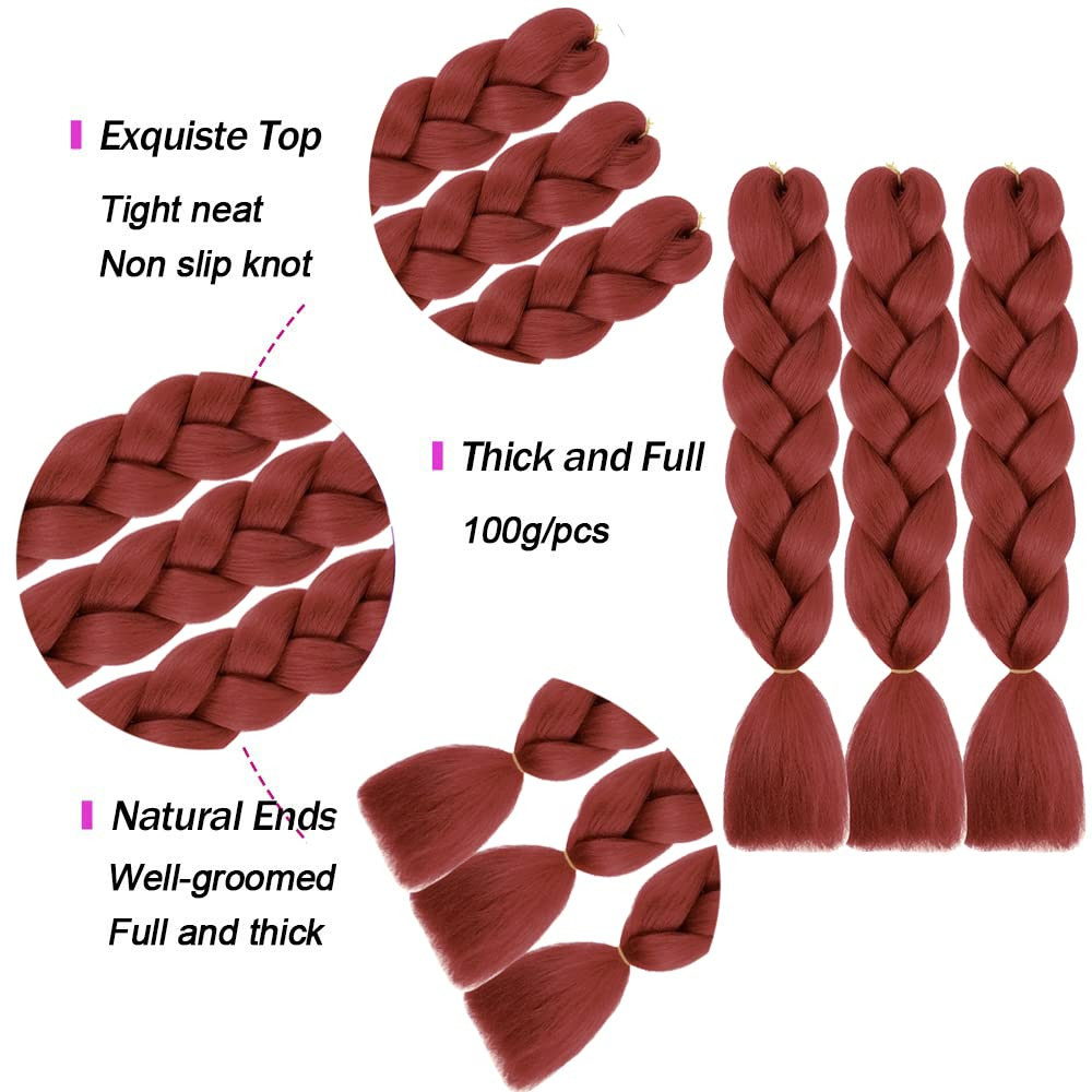 Chcete oživiť svoj vzhľad špeciálnym účesom? PORSMEER 3-dielna súprava jumbo braid syntetických vlasov je ideálna voľba pre všetkých, ktorí si chcú vytvoriť jedinečný a efektný účes s minimálnym úsilím. Táto prémiová, 60 cm dlhá červenohnedá súprava Kanekalon syntetických vlasov vám umožní v okamihu vytvoriť ohromujúci zapletaný účes.