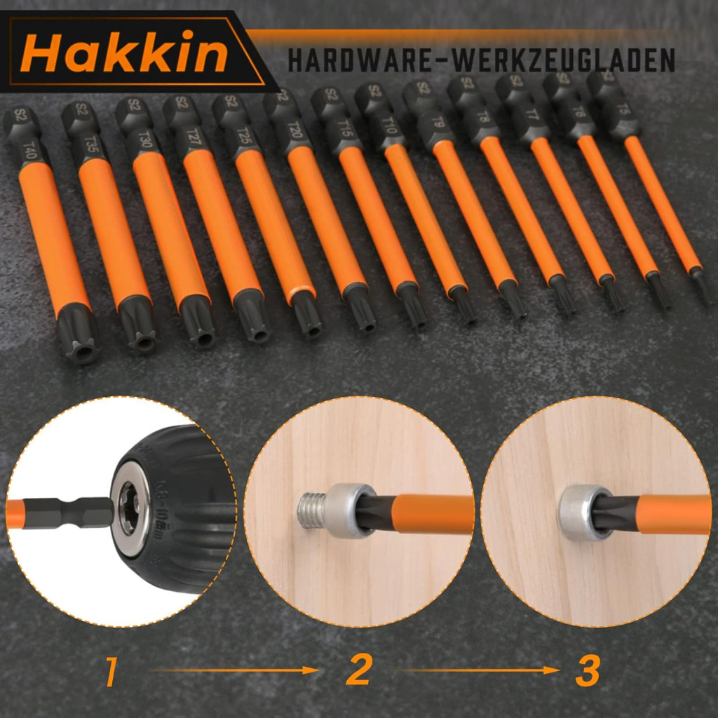 Hakkin 13 részes Torx bit készlet 75mm mágneses csavarhúzó S2 acél