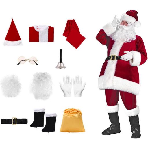 A Licus Deluxe Mikulás jelmez 11 darabos komplett szett minden szükséges kiegészítéssel: