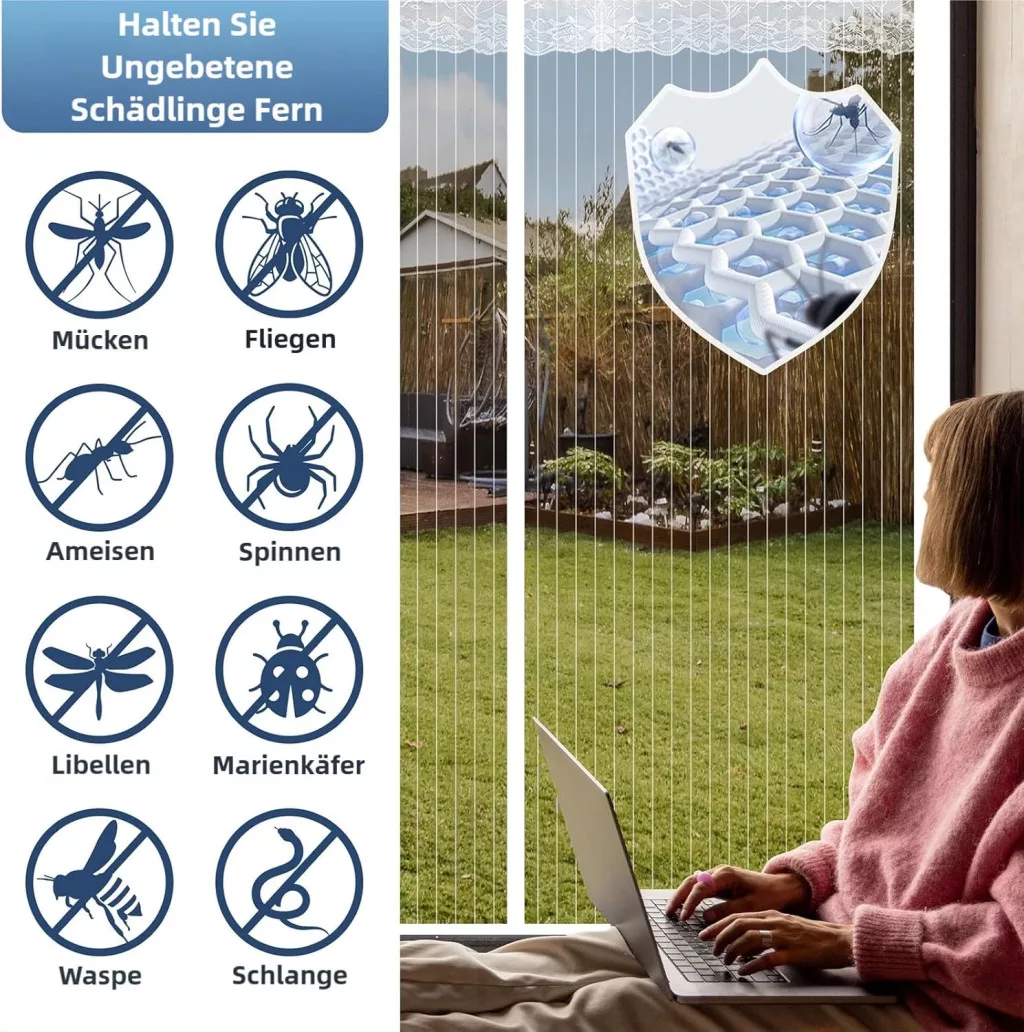 Po inštalácii si môžete okamžite vychutnať čerstvý vzduch bez hmyzu. Používanie siete proti hmyzu je mimoriadne jednoduché – stačí cez ňu prejsť a magnety automaticky zatvoria sieť za vami.